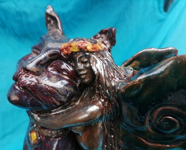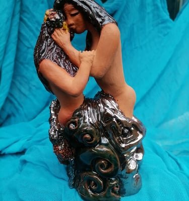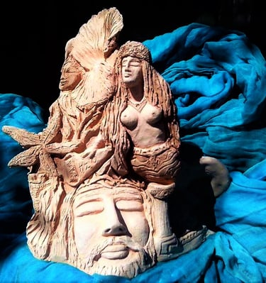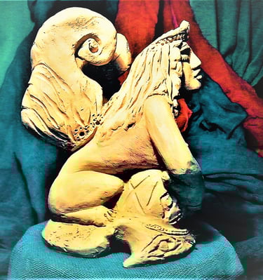 Ancient myths revive in an intimate way, where feelings, emotions, and dreams, become inspirational themes captivated in clay and stone art. The mythological symbolism combined with expressional freedom, aim to inspire and enjoy your world of fantasy
