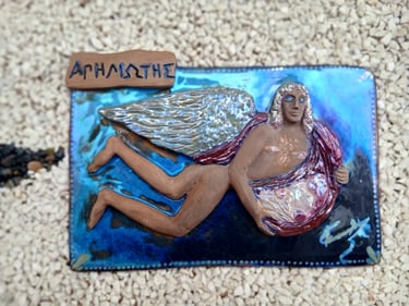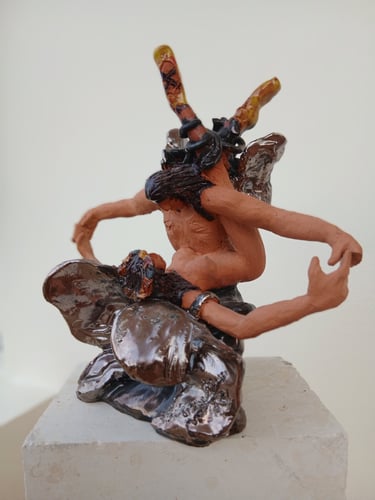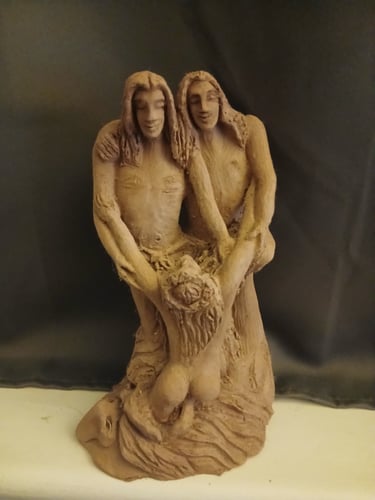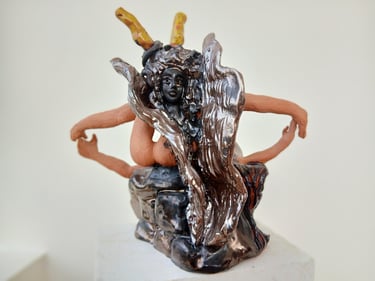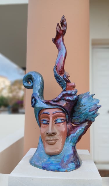 Hellenic sculpture represents the personal artwork of Helleni Yiannakoulakou, inspired from Archaic era and Hellenic Mythology. Figurative, emotional and erotic artwork in ceramic and stone.