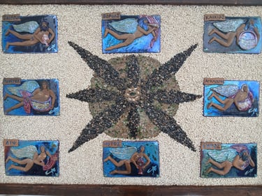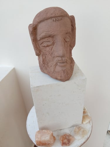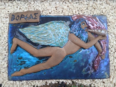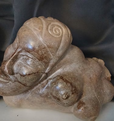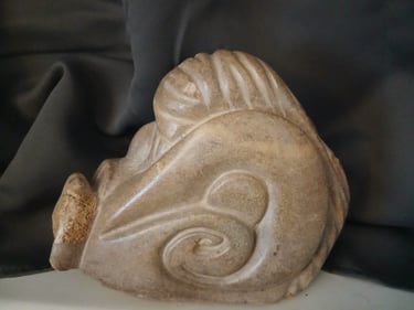 Each piece of Hellenic Sculpture, is a unique handmade signed prototype, with a particular theme- inspiration. After basic material's selection, design, creation, decoration, and refinishing, are the stages of work. Ocasionally, the shape of the stone inspire the theme in stone sculpture.